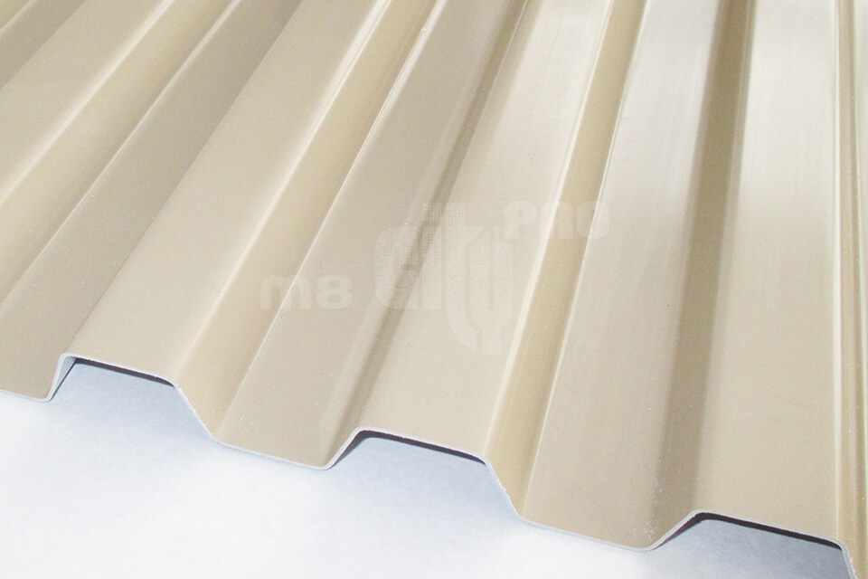 Плиты ONDEX HR с волной Greca 70/18 бежевый RAL1015 (High Resistance - высокопрочный) особенно подходят для больших по площади объектов следующего назначения: склады, стадионы, выставочные сооружения. Светопропускание плиты бежевый RAL1015 <1%.