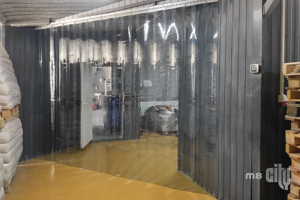 - Теплоизоляция: Ленточные завесы ПВХ помогают удерживать тепло в помещении и предотвращать проникновение холодного воздуха и сквозняков. Это особенно полезно в зимний период или в помещениях с кондиционерами, чтобы сохранить оптимальную комфортную температуру.
